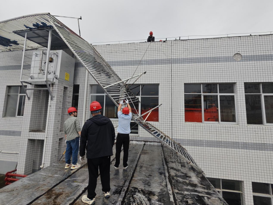 为筑牢安全防线,电站同步开展灾后专项排查,对办公区域、生产厂房、施工现场等重点区域进行全覆盖、无死角检查,全面梳理财产损失,精准排查安全隐患。4月13日全面复工后,领导带队开展二次核查,坚持分类处置、精准施策:对可立即修复的设施,迅速组织人员进场;对暂不具备修复条件的点位,有序推进勘察、清理等筹备工作。同时,紧急拆除厂房上方破损标识牌主体结构,彻底消除高空坠物风险,全方位织密安全生产防护网。