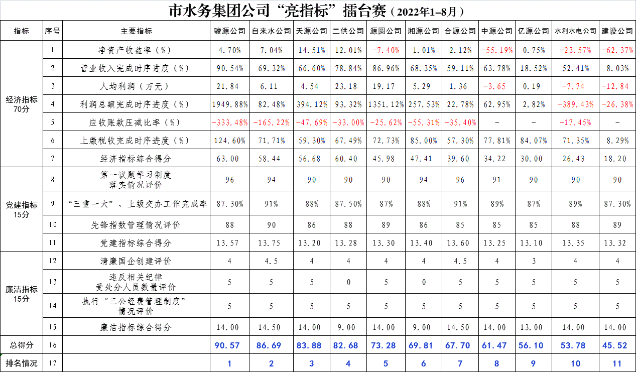 “三整顿、两提升”,奋起二次创业——市水务集团公司“亮指标”擂台赛(2022年1-8月)